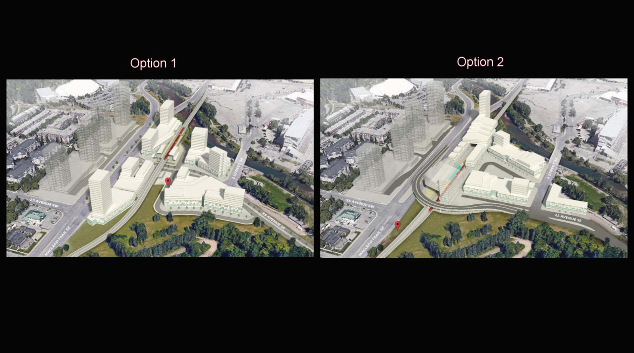 I prefer Option 2 as it gets rid of intersections, which is what is needed at 25 Ave. Option 1 is slightly better for development though. Either one is a big improvement.