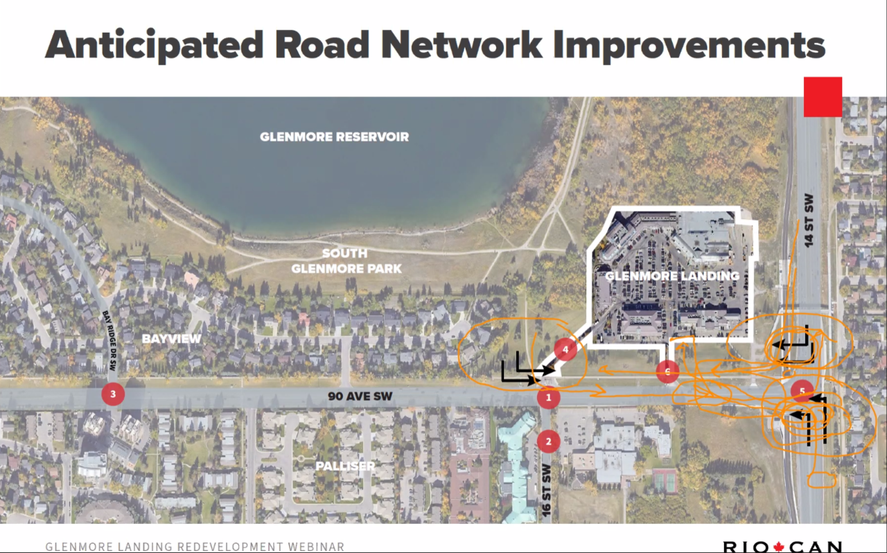 The required road improvements complete with the engineers scribbles haha. Adding more turning lanes mostly and a dual right turn with traffic lights from Southbound 14st to Westbound 90th Ave. Similar to Southbound Blackfoot right turn onto Westbound Southland Dr.