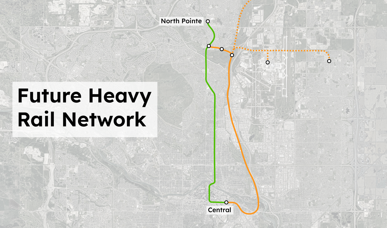 The approach I would take if I didn't think the tunnel could be constructed for a reasonable cost is straight forward - the north line comes down the Centre Street Bridge, turns on 3rd Ave with a stop in Chinatown, then goes down 1st St W to 7th Ave. The southeast leg comes down 11th Ave (or one direction on 11th, one on 12th), then goes under the CPR using the existing structure at 1st St W. All of these roads lose two lanes of car space and gain a two-way LRT track, which results in a rough 5x increase in person moving capacity.