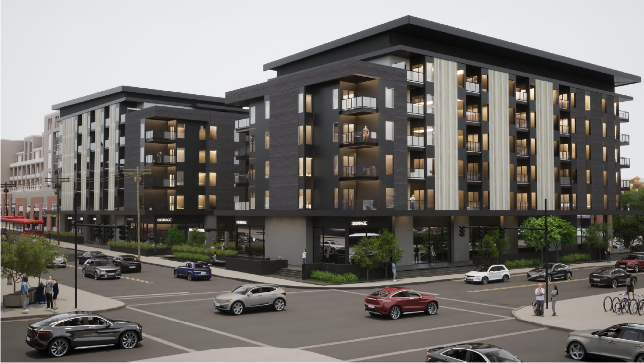 When are we going to start seeing wood up to 12 storeys here?Should be more than 6 storeys for that location but that pesky cost of concrete. Feels suburban and I hate the bulky dark overhangs that do nothing but block sky and daylight.