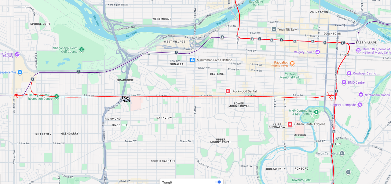 something that roughly follows Max Yellow to Marda Loop & MRU, or a 17 Ave connection to Westbrook