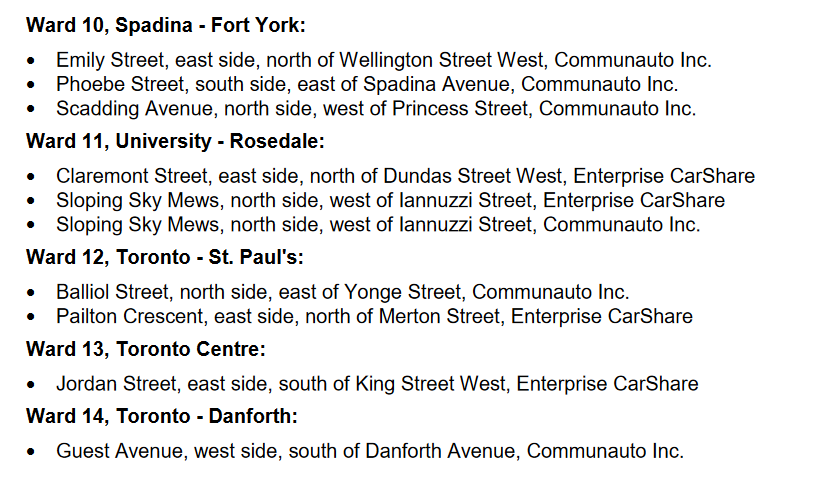 How Car2Go wanted to operate per a recent proposal to council: (this is also how it works in Vancouver, Montreal, Calgary, a couple odd dozen other North American cities and several European ones) C2G pays the TPA a certain amount per car they own per month, and get to park in any semi-restricted parking space for free; i.e. they cannot park in a no parking/standing/stopping zone including rush hour zones (i.e. they would not allow members to end their rentals on King St even at 12PM because the car could stay there until 4 and be towed), and not in accessible spaces either, but they