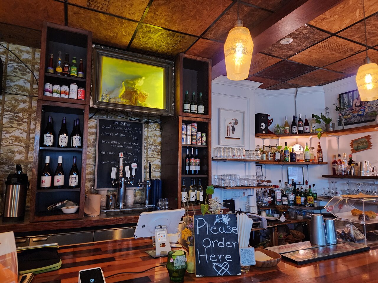 The patio is really pleasant in the summer and the whole side of the building opens up, so it's just like being outside. Wonderful place. You can get a freshly baked croissant and some fresh fruit compote for about $5, which is a steal these days.