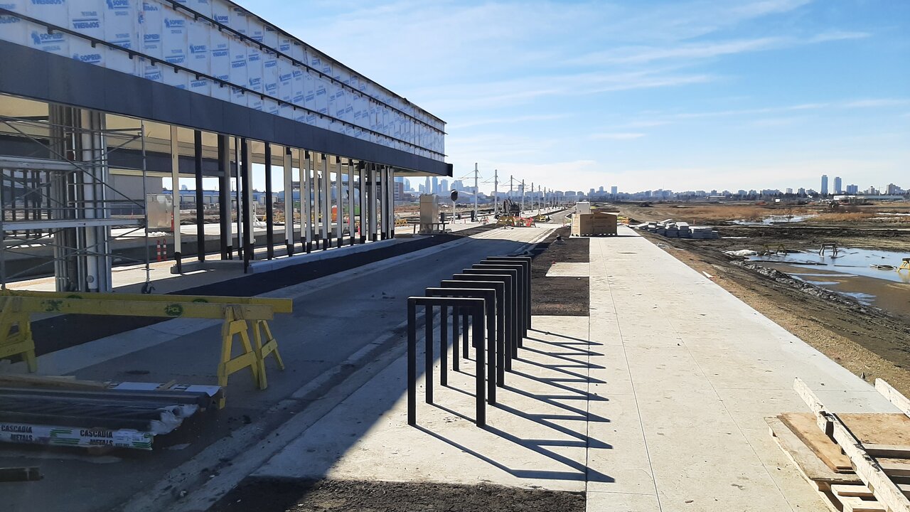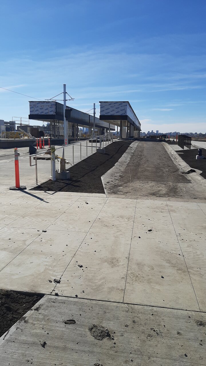 The NAIT station. No sidewalks or bike lane completed in this area versus the north Station where all that work is completed including bike racks. North Station also ready for landscaping.