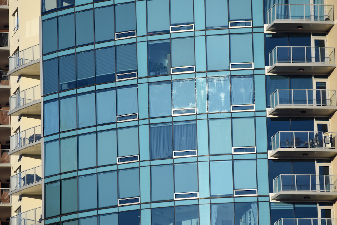 Reading between the lines -- and the fact that all the windows are blocked out -- I would imagine this is a somewhat high profile individual that may or may not have been in the news quite a bit lately...How did they hit that from up there? Given that the marks seems isolated to one specific unit I wonder if it was 'targeted'?