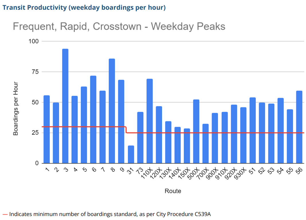 The 3 is my main bus route and it is quite busy, which aligns with this data. Connecting two LRT stations (Stadium and Kingsway/Royal Alex) and a major transit centre (Westmount), plus major employers (Royal Alex and Kingsway) will do that.Transit Productivity (weekday boardings per hour) - Attachment 3
