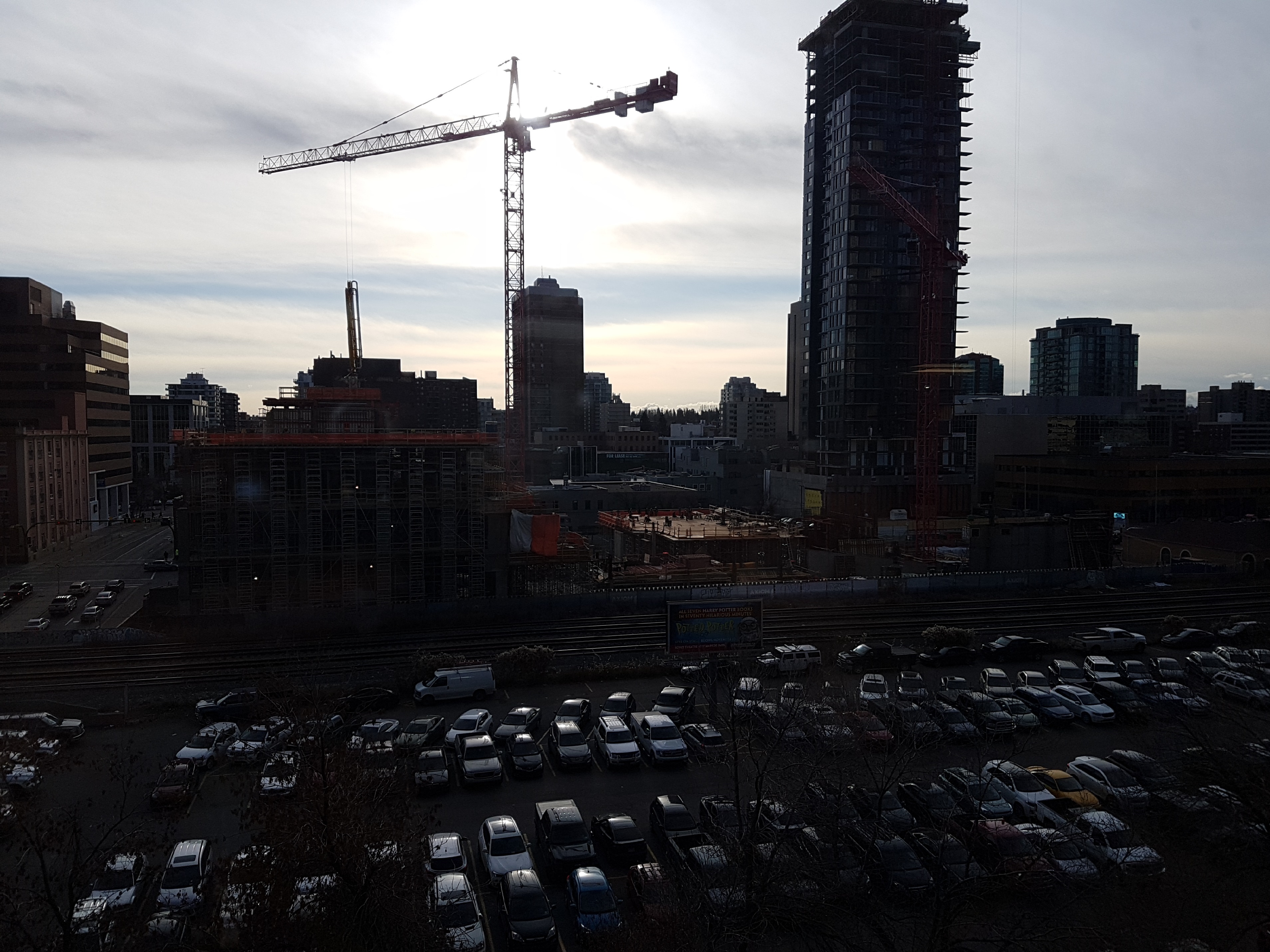 And here's one from my usual vantage at the Garage Mahal. It's heavily back lit, but I think it's an OK silhouette of 6th & 10th and the Marriot.