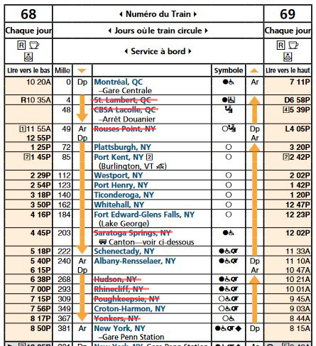 On top of dropping St Lambert, I think Rouses Points could be dropped as well. Once customs relocates to Montreal, I don't think the tiny town would warrant a station on its own. Or if the station is maintained, it could be served by the overnight service only (which would be conveniently timed for day trips to Montréal).