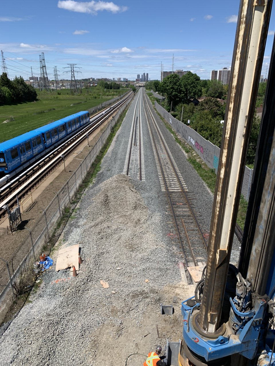 This project also includes infrastructure improvements undertaken by CN, which include the track shifts to the four new through plate girders (TPG) spans, fibre-optic cable relocation and related corridor grading to accommodate a future four track corridor for two CN tracks and two GO tracks. A new retaining wall on the south ROW will protect the embankment for the future track construction.