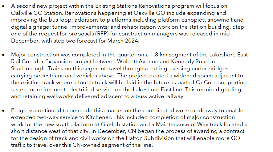 If GO uses the northern pair of tracks, the only significant station construction required would be to add pedestrian tunnels/bridges at Dixie, Lisgar and Milton stations. The existing pedestrian bridges/tunnels at Kipling, Cooksville, Erindale, Streetsville and Meadowvale would not need to be modified at all.