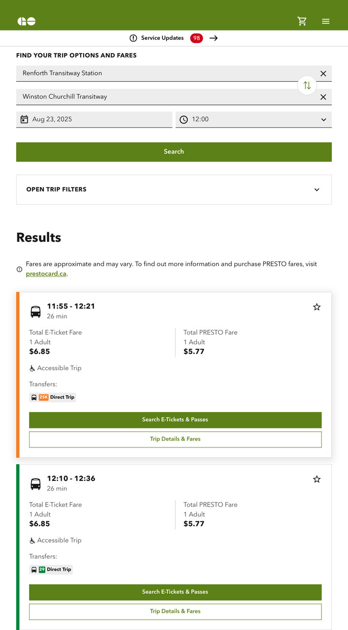 I am aware of GO’s base fare just being a couple cents more and you get a 3 hour transfer instead of 2 which makes it more beneficial, but that’s actually not the case with what I was making with my previous post, talking about the lower ridership with the GO bus routes at Kipling.