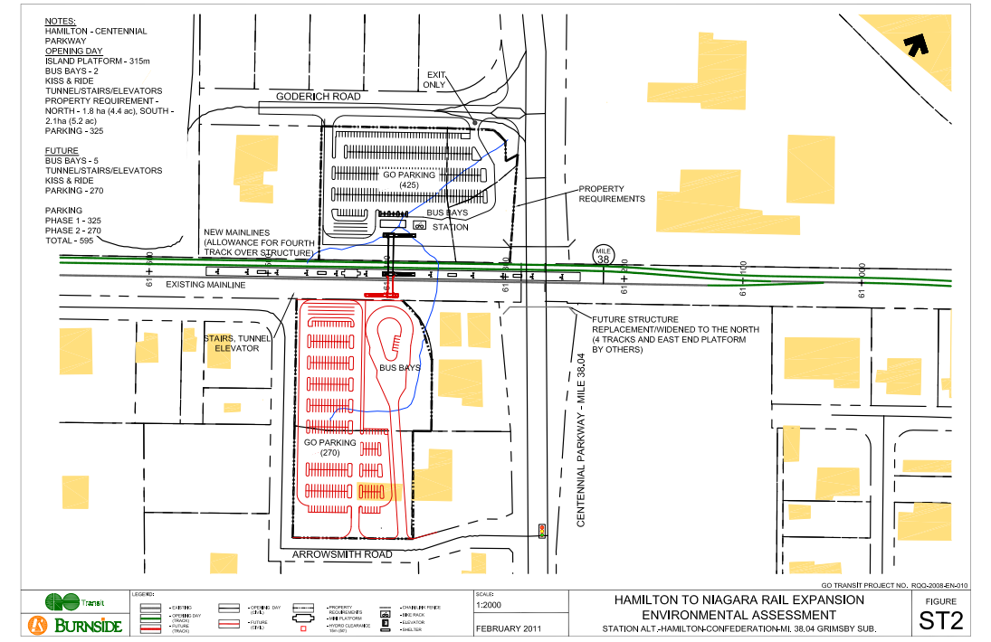 Diagram of Stoney Creek GO Station, named "Confederation GO Station".