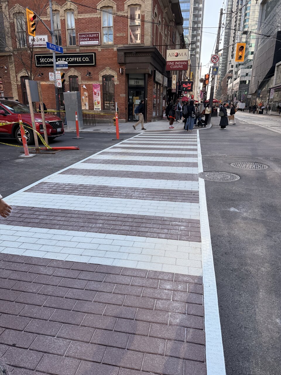Jokes aside, this is actually really nice and should be bare minimum throughout the city. The entire neighbourhood has had a lot of its sidewalks replaced and while they look good for new concrete sidewalks (at least before the saw and asphalt comes out) I wish we took the time to refresh our sidewalk standards. Cities in Australia have such nice pavers.