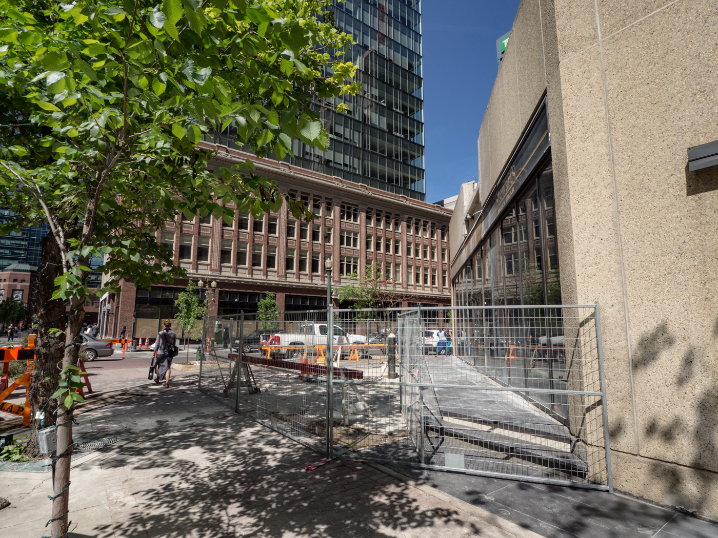 Phipps McKinnon building has torn down that weird clock tower thing and opened up the corner. Actually looks really good without it.