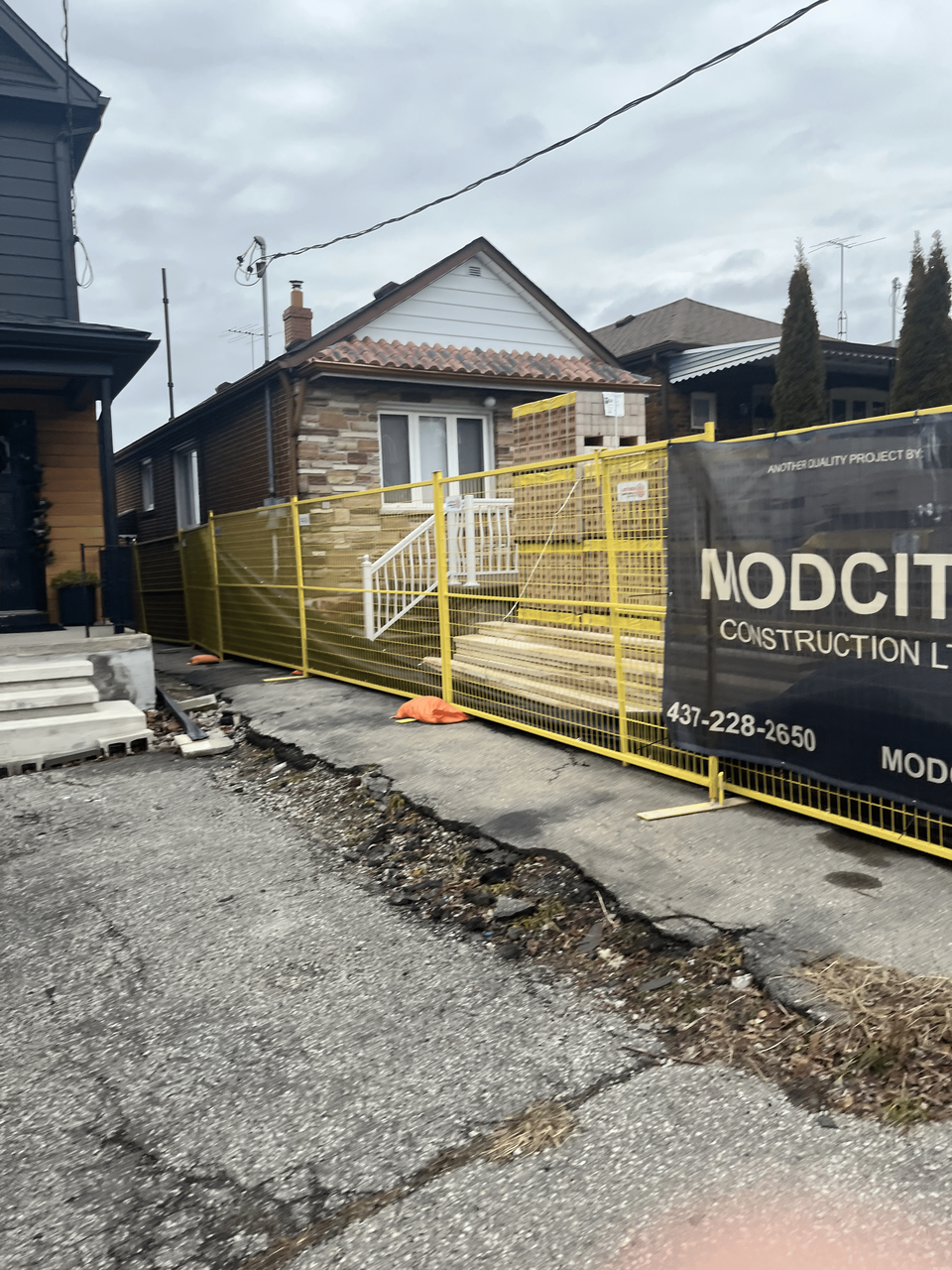 A few houses down and across the street, 6 Kirknewton appears to be behind construction fencing awaiting demo. Not sure what's being built here, but it's by the same developer (Modcity) that specializes in multiplexes: