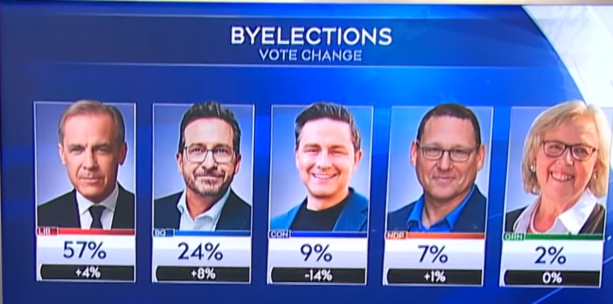 Tatiana Auguste has won the byelection in Terrebonne, Quebec (by more then one vote this time!), for a clean Liberal sweep of all three byelections. The Bloc vote share did go up however in Terrebonne thanks to Conservatives strategically voting for the Bloc to stop the Liberals. Alas, it wasn't enough and the Liberals did narrowly win it for their first successful, non 1 vote win in the riding since 1980.