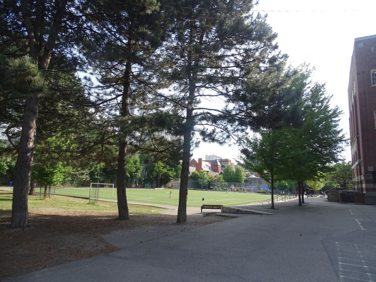 So now we're going to follow the circular path that encompasses the original Trinity College site, and is today, mostly open area for picnics........while sometimes glancing south towards Queen: