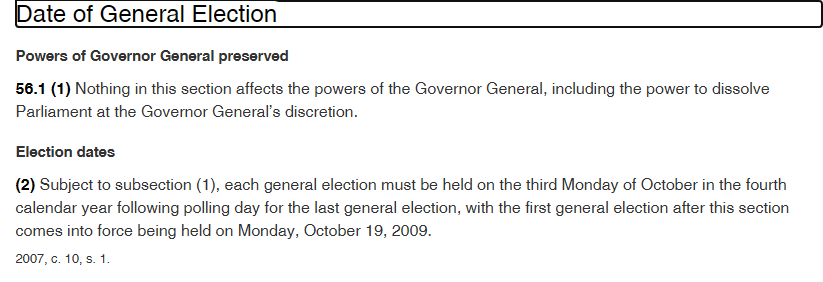Of course, there's mandatory election dates now - but that's not constitutional, and can be changed by Parliament. I doubt it would happen - but not as much as I'd doubt an election this year.