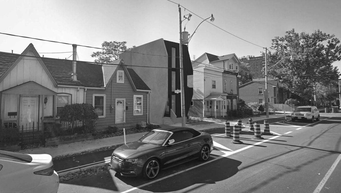 A bit south of the main Regent Park core, here's a proposal for a 2-unit townhouse to replace that red coloured house currently on the south side along Shuter Street, just east of the Preston Place laneway (a bit east of Parliament).