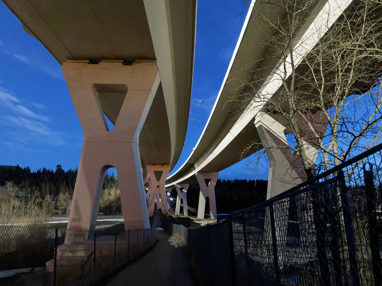 Stoney Trail Bridge construction pics taken a few nights ago. They're still working on the bridge where it anchors into the hill on the south side.
