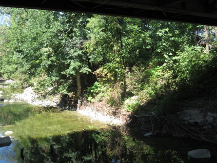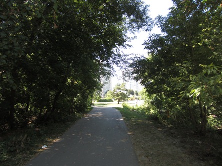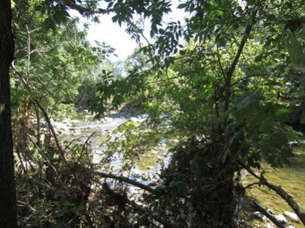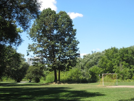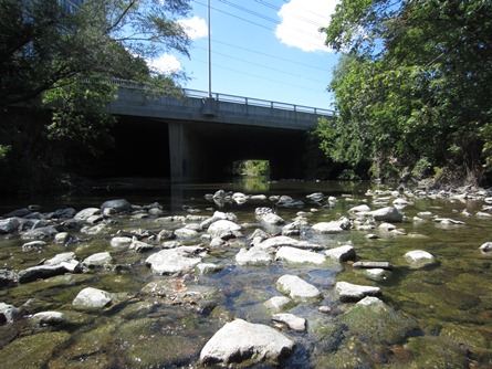 Next up is the section of Mimico Creek that runs through Tom Riley Park. The trail runs from Bloor to Dundas. I have driven by this trail and park so many times that it was nice to finally walk it. The trail runs through parks, a lawn bowling club, and some ball diamonds. Near the end of the trail I decided to walk on the rocks in the creek and spotted half a coconut. See if you can spot the other pic with the other half of the coconut.