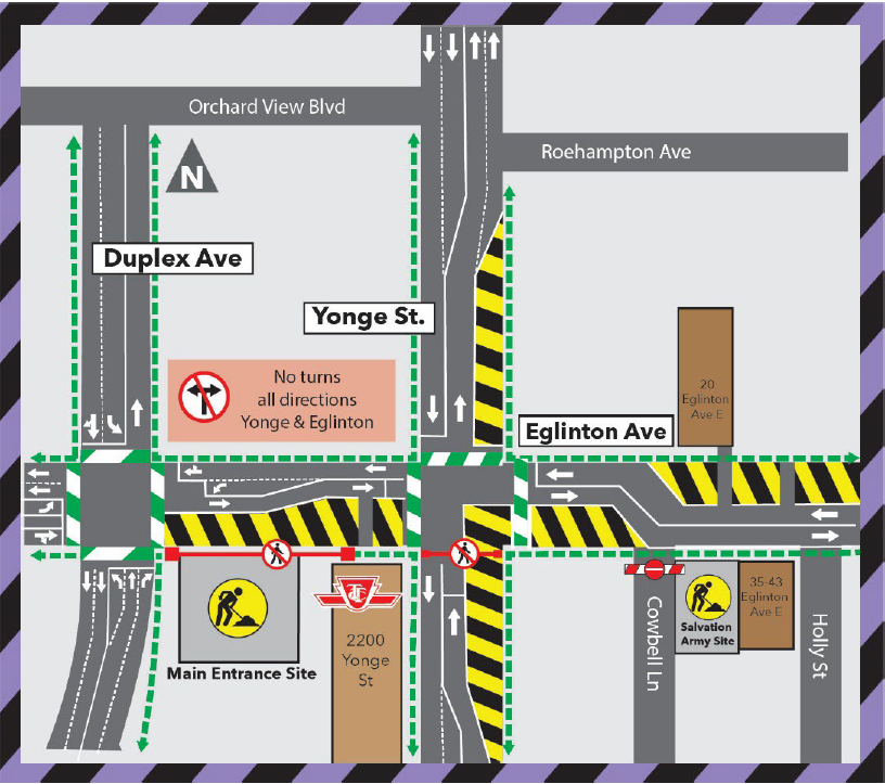 It's answered here:I’m sure this is answered already, but what is the new concrete structure in the middle of Yonge street, north of Eglinton? Is that a future entrance or will the road simply have a divider there? Looks like more than a divider though.