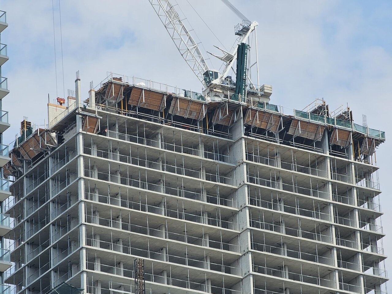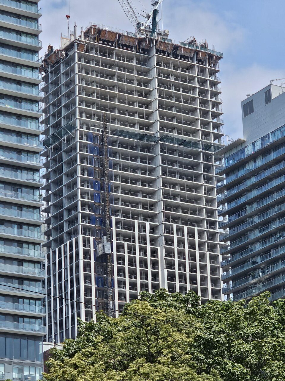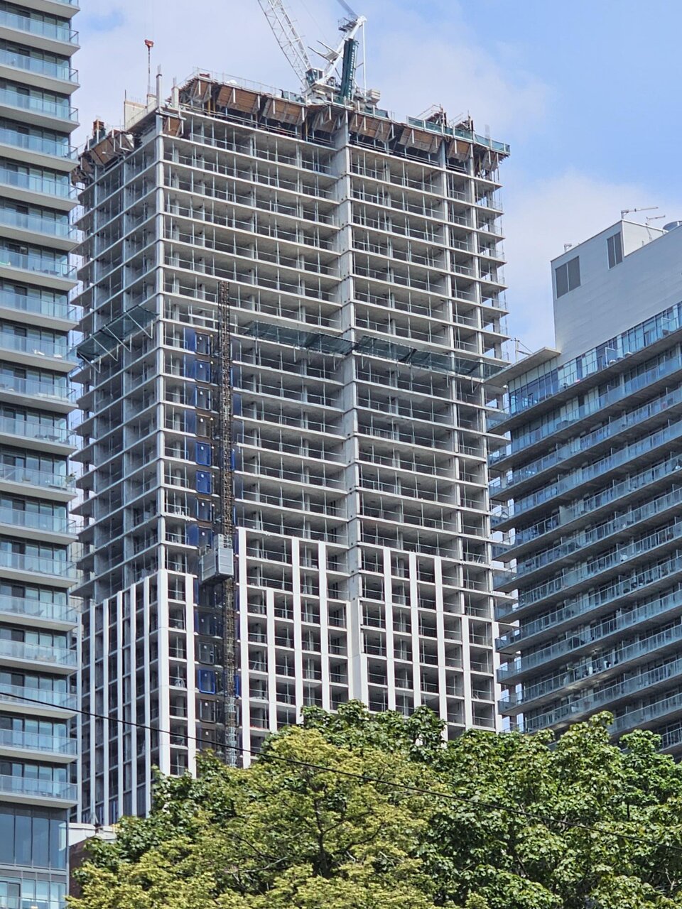 June 30 - active work day at King Toronto, with ongoing cladding installation activities.