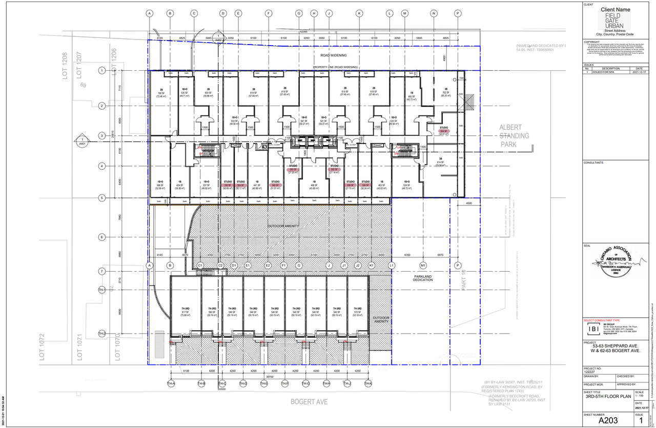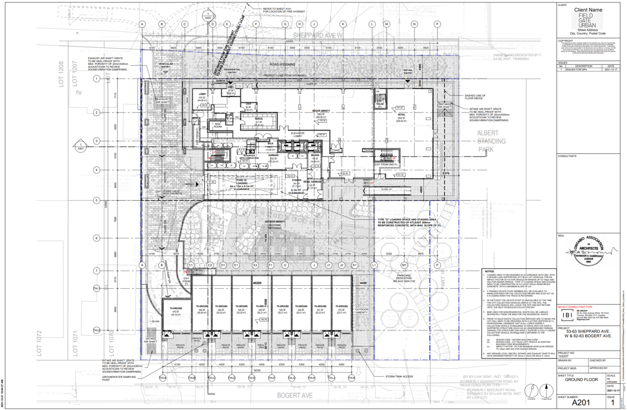 - NOTE: City of Toronto has a Albert Standing Park Improvement/ReBuild project - Office Park VS Neighbourhood Park,.... this project was put on hold a few months ago - while this Revision was making it's way through City Planning towards Official Submission - thus, I suspect the main reason was to clarify if the on-site Section 42 Parkland Dedication will just be the adjacent 50' along Bogert VS 25' on Bogert and 25' on Sheppard
