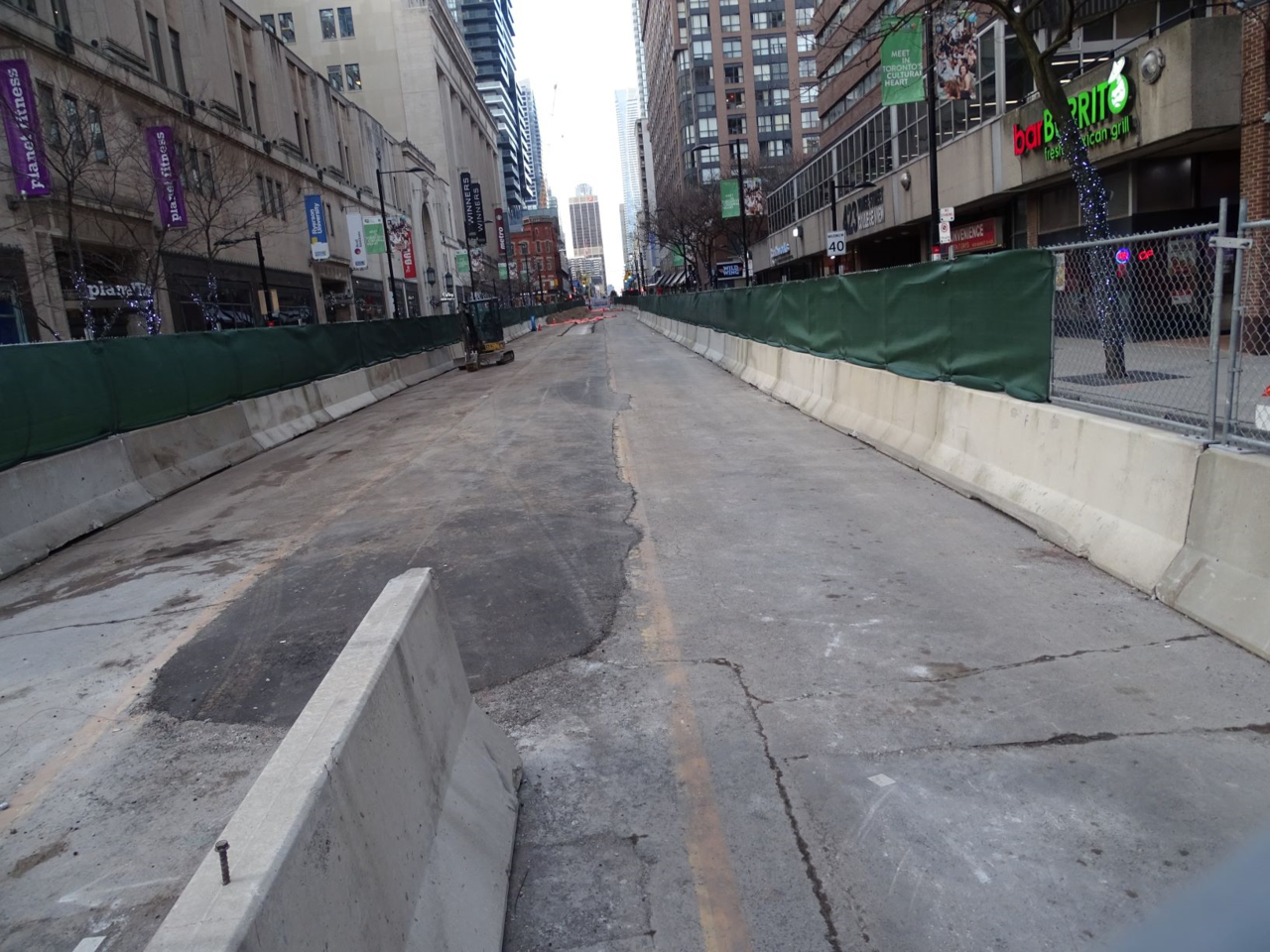 Sections of tile on mezzanine level also removed and hoarding erected.