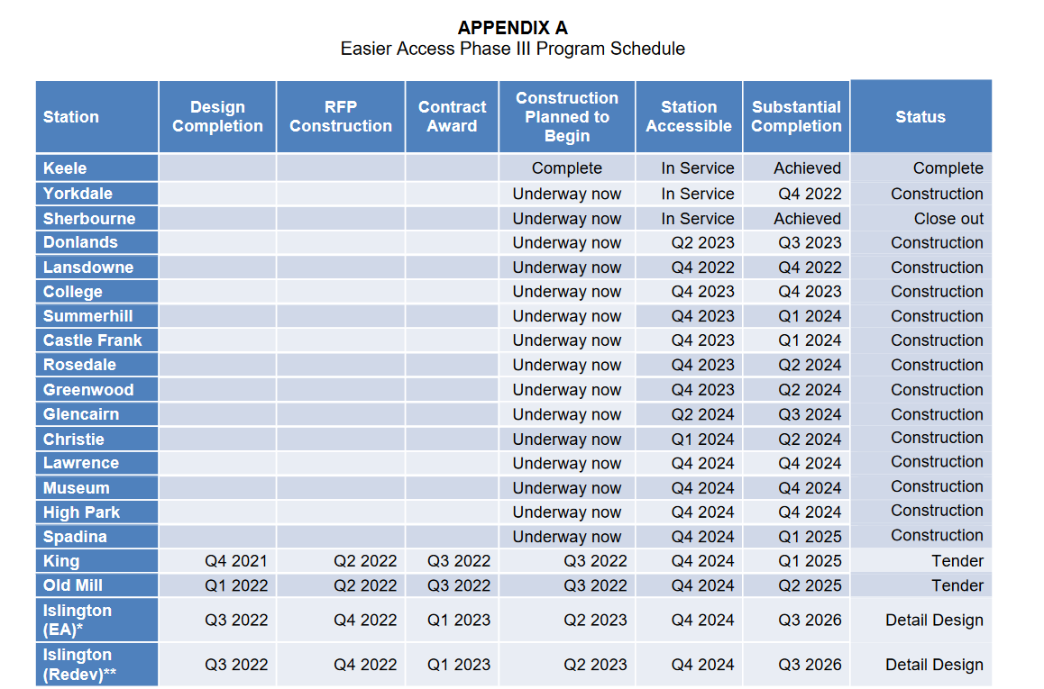 Additional note, construction for the elevators at Christie Station is imminent (listed as, ' as soon as June 6th' )
