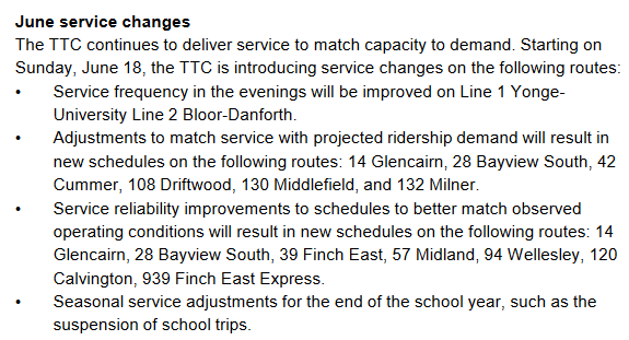 On Mon., June 12, TTC staff will be making a presentation during the Board Meeting on the upcoming service changes, and alternate routes available to customers.