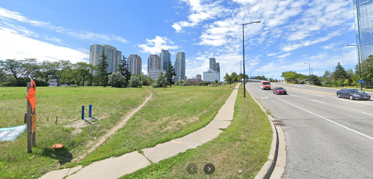 You can seen an informal foot path or desire line, leading from the intersection of Grangeway and Progress to McCowan Station.
