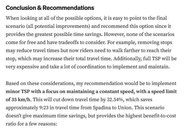 It actually dates from January '24, but I don't recall seeing it before............(perhaps I missed it or forgot it, if so my apologies) but a fellow named Paul Gallagher posted detailed modelling on different ways to speed up Spadina.