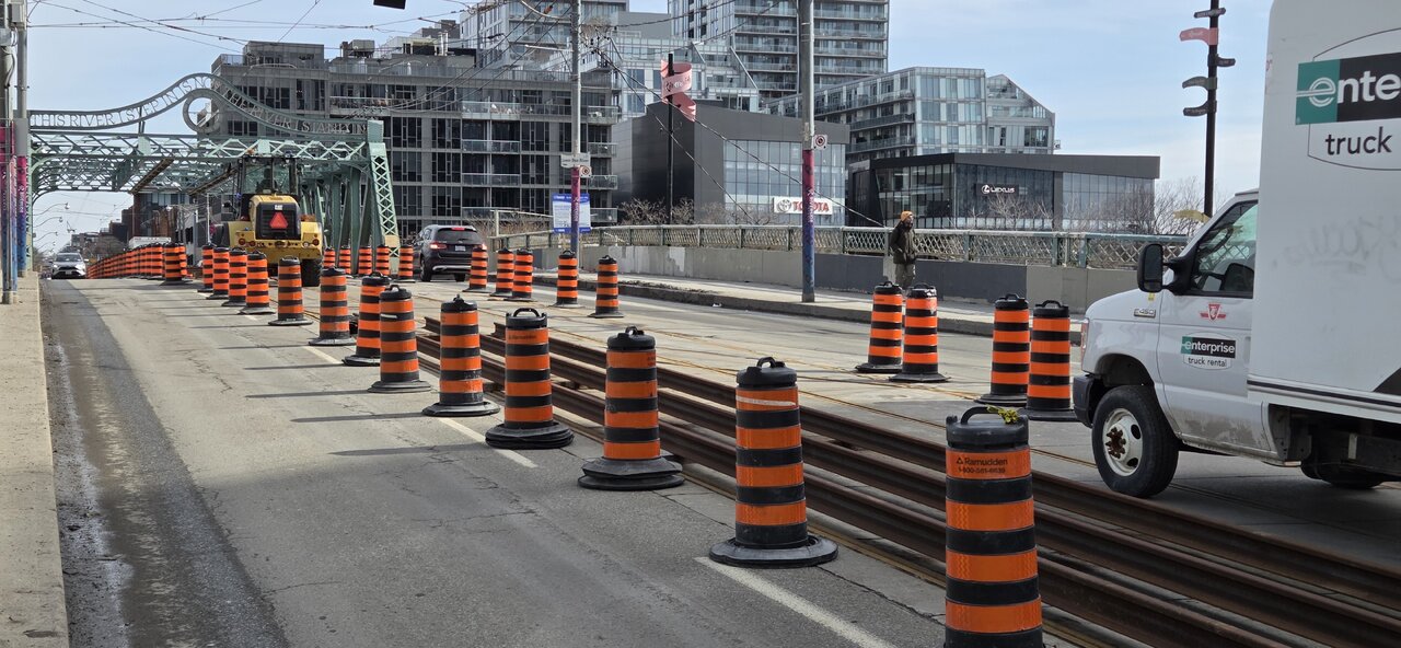 Walking over the Queen Viaduct today. Major construction work going on from Broadview to River Street, along Queen. Signage says January - April, 2026. I snapped some shots, since I happened to be there and some of the stuff going on is cool, though disruptive to the King and Queen Streetcar lines...