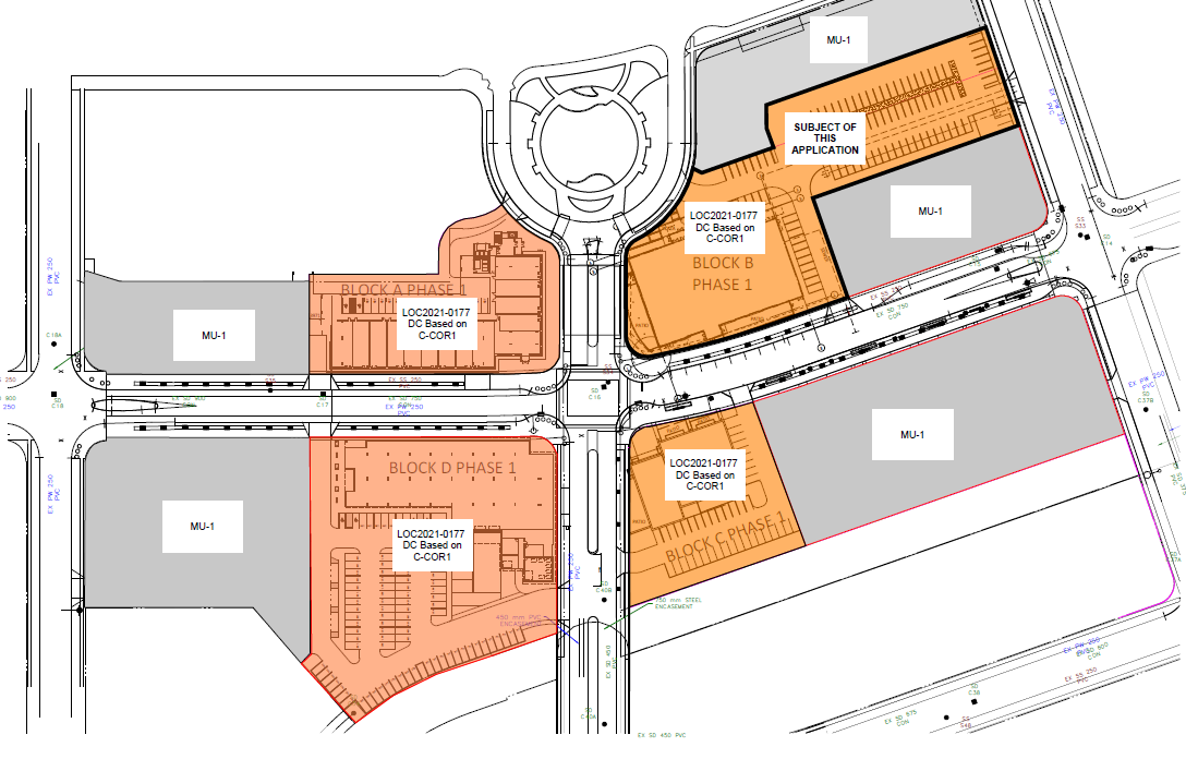 The first is a Market Hall commercial building. But it's DP package also shows the overall land use plan for the intersection: