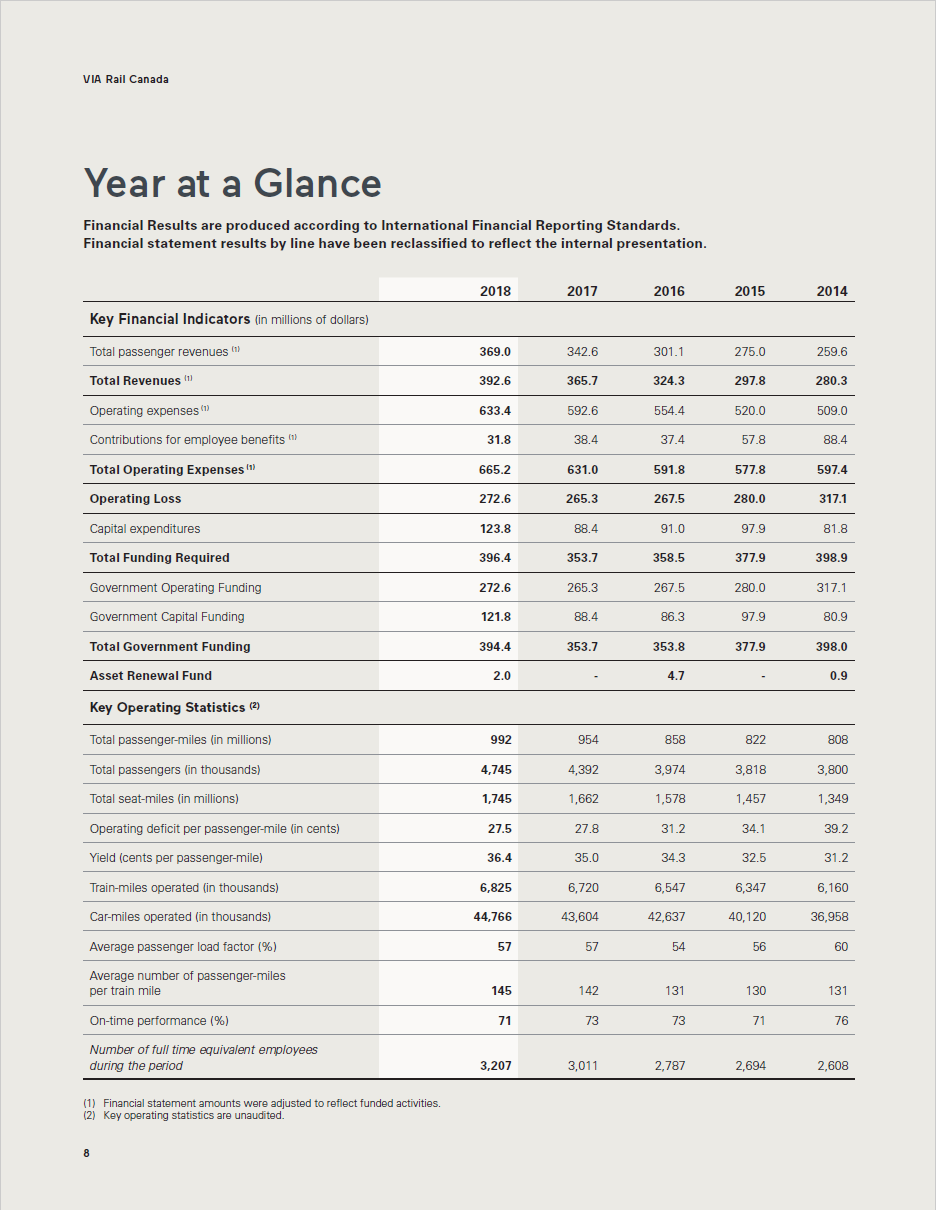 VIA Rail's performance (KPIs, 2018 vs. 2014)