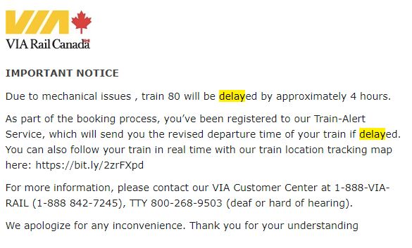 I love how I was 1-3 hours delayed because someone took their lives on the tracks and caused cascading delays across the VIA network (multiple times).
