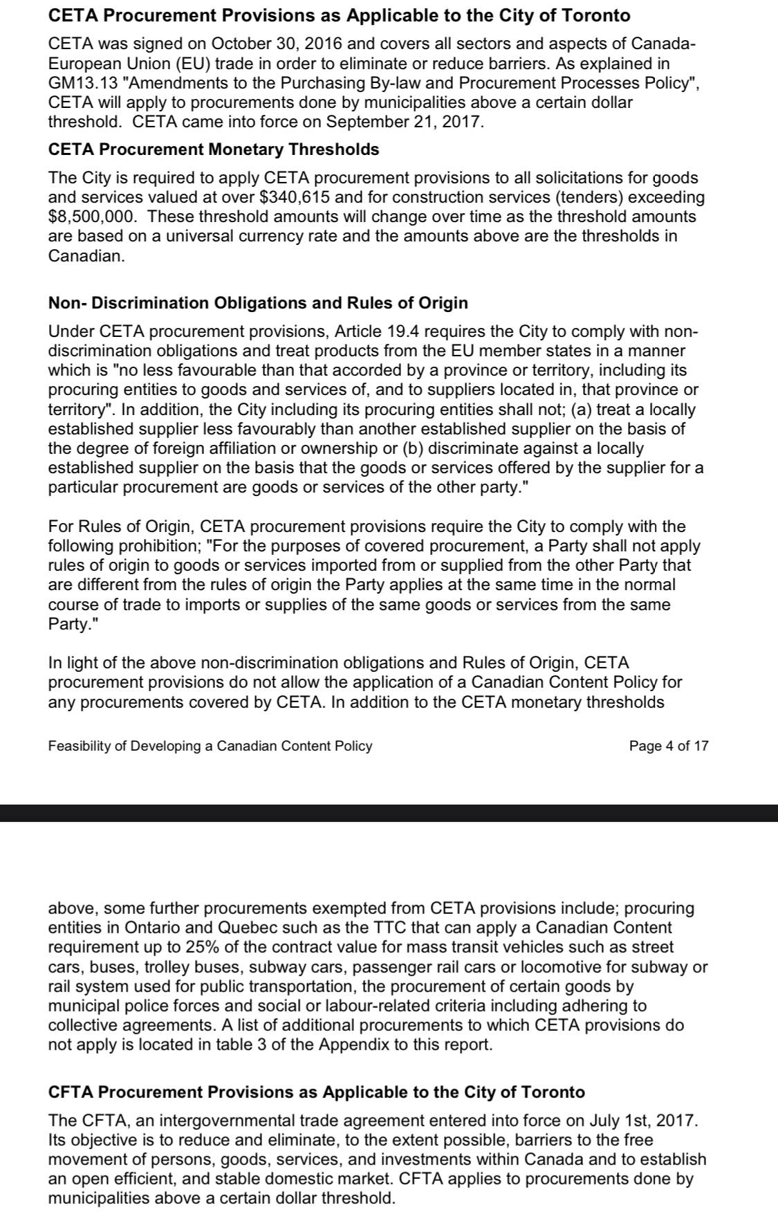 Just as with the Corridor procurement, Canada’s commitments negotiated under the CETA agreement forbid such „Canadian Content“ requirements (let alone: „Buy Canadian“ legislation) for any rolling stock procurement for VIA: