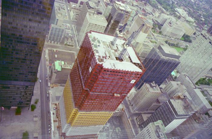 I was up there a few times when I was a kid before and during the CN tower build and remember the aviary well, it ran all around the interior of the observation level. One visit we got stuck in one of those huge elevators. A few years earlier I had seen one of those ABC/NBC "movie of the week" cheapo, made-for-TV disaster films about a group who gets stuck in an elevator that gets closer and closer to plunging down dozens of floors. I was scared to death when we got stuck in that elevator!