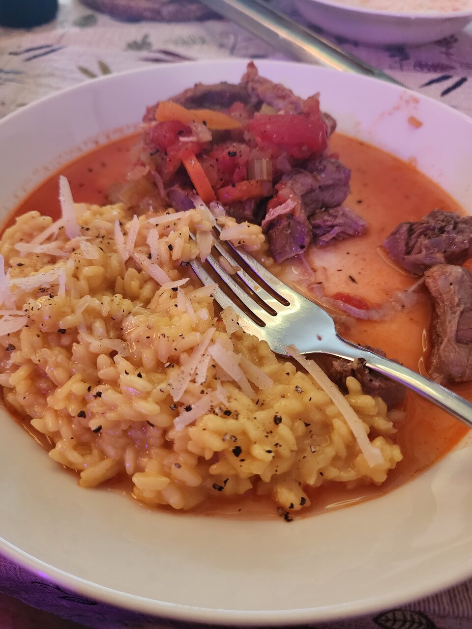 Classic osso buco with risotto alla milanese tonight (the bone fell off). Sounds fancy, but veal shank slices, if you can find them, are about $4 per person. When Maisie has them, I buy some immediately. But it does take at least a couple of hours to cook. The lavish part was the Amarone! View attachment 485141