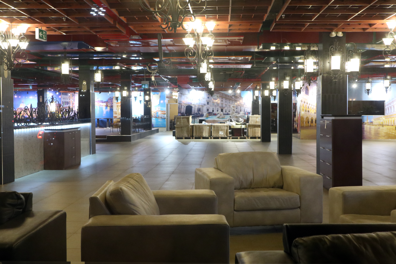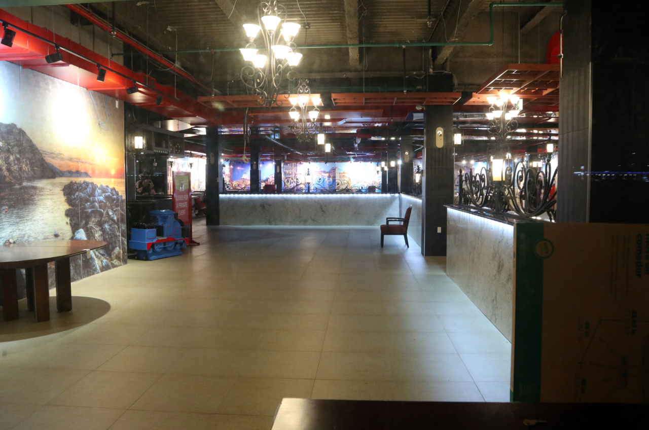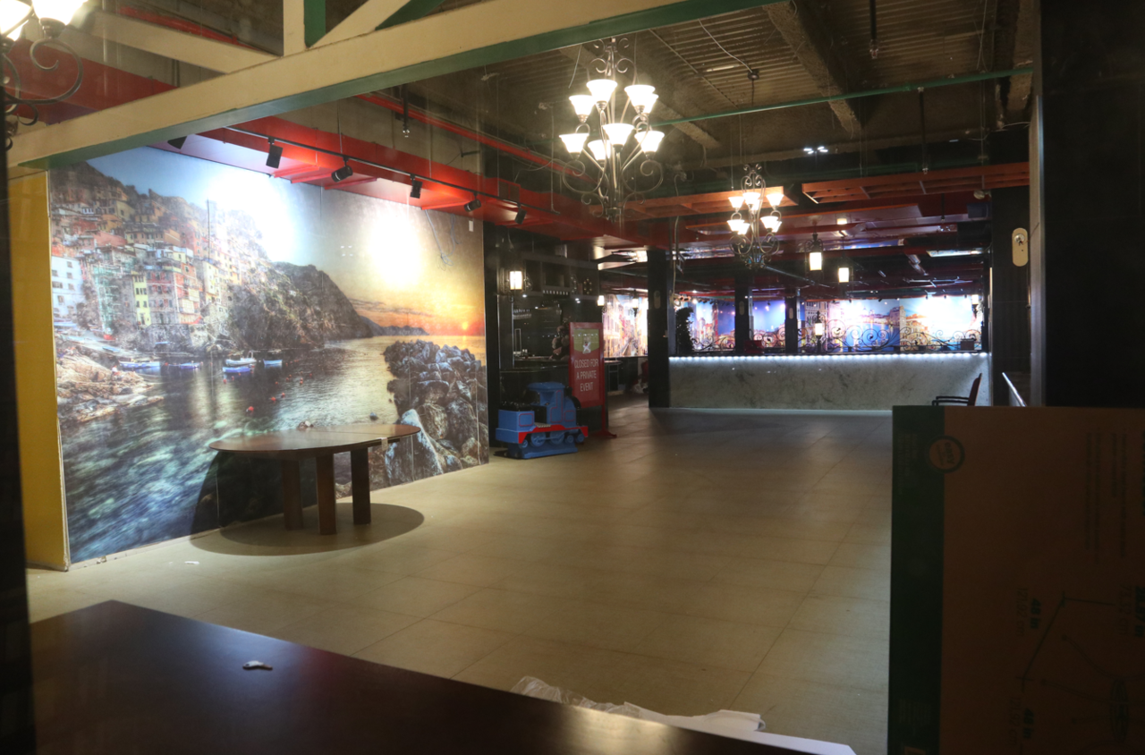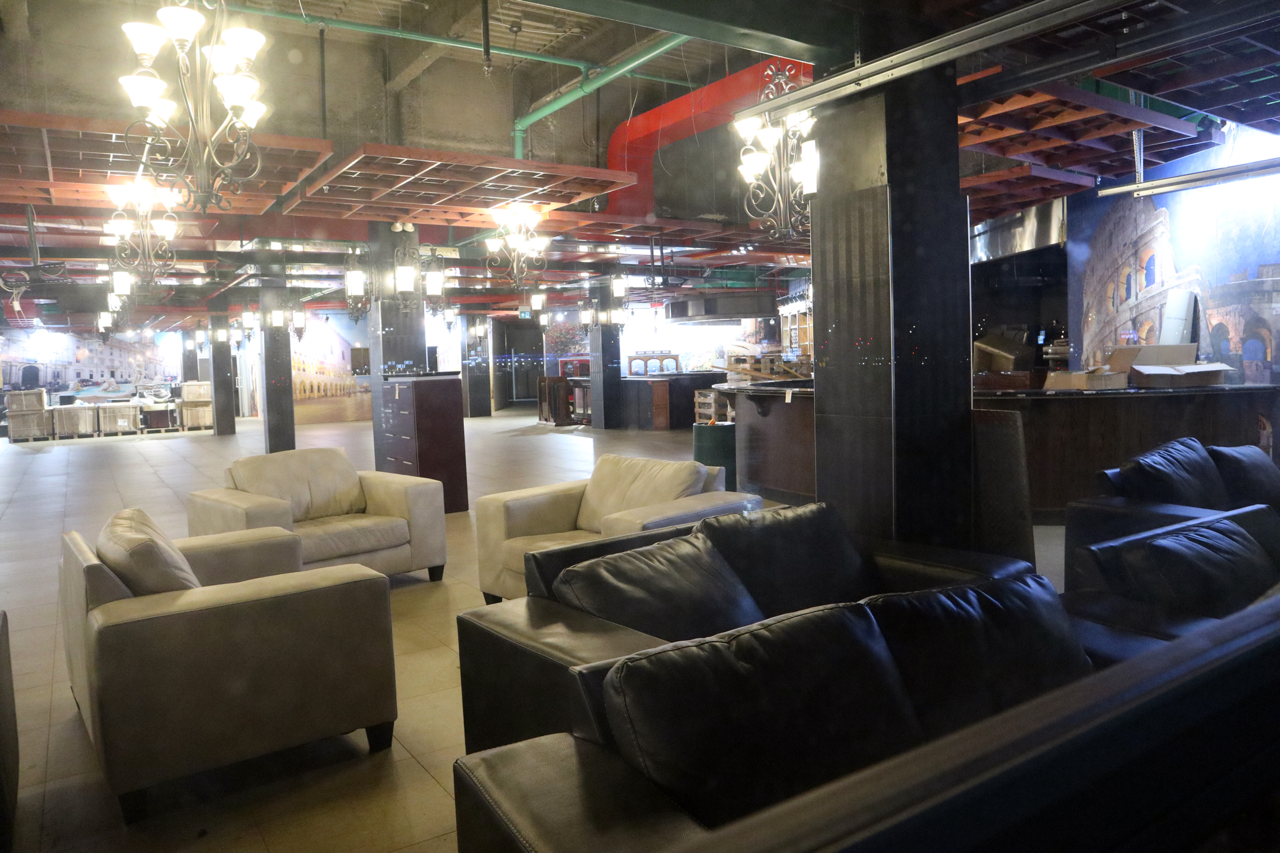 Front entrance looking to the back. The table to the left was probably meant for staff to greet and seat customers.