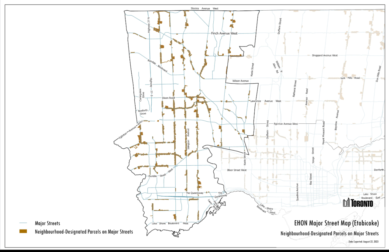 The highlighted area reflects portions of Major streets currently designated 'Neighbourhoods'